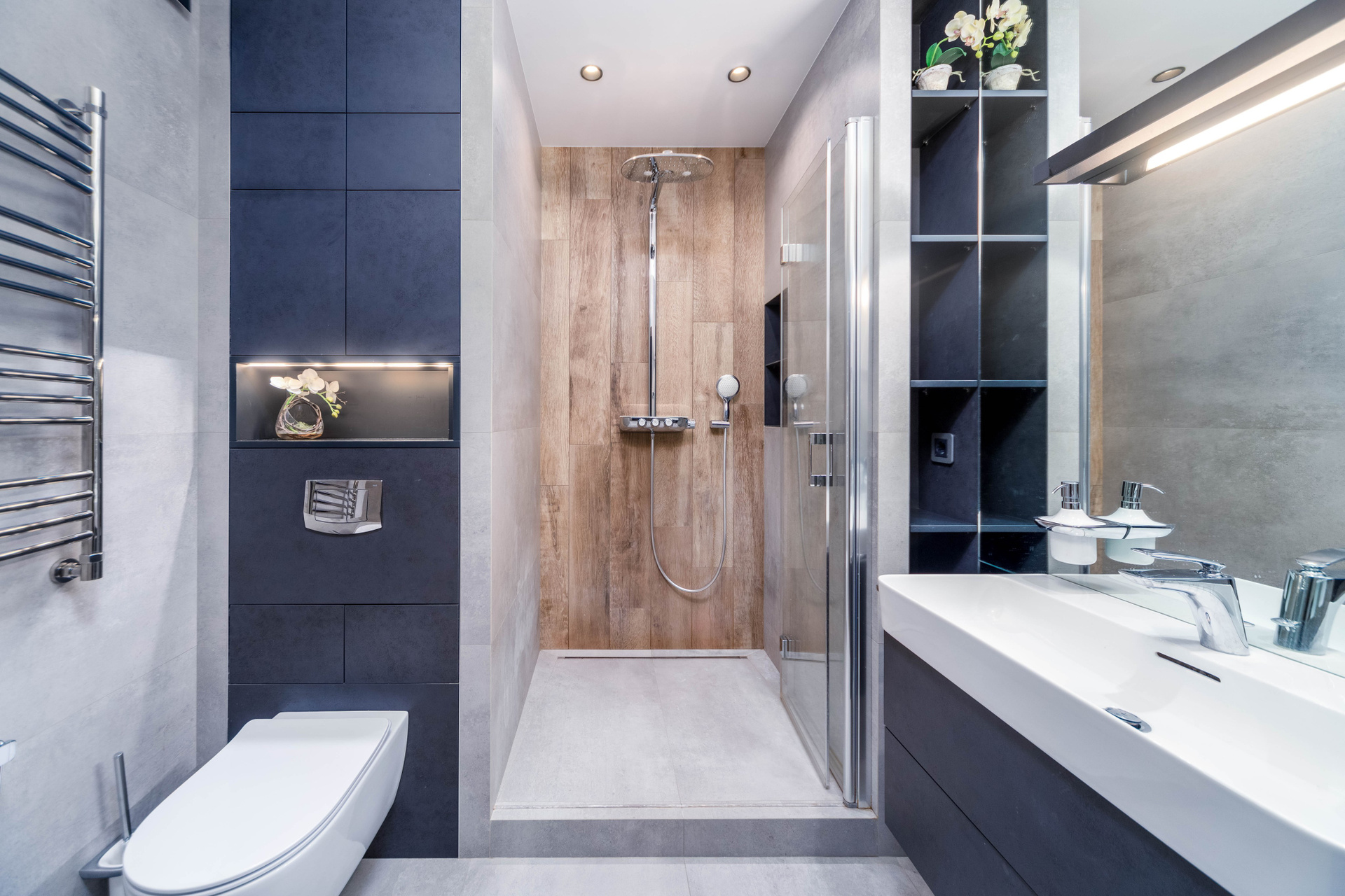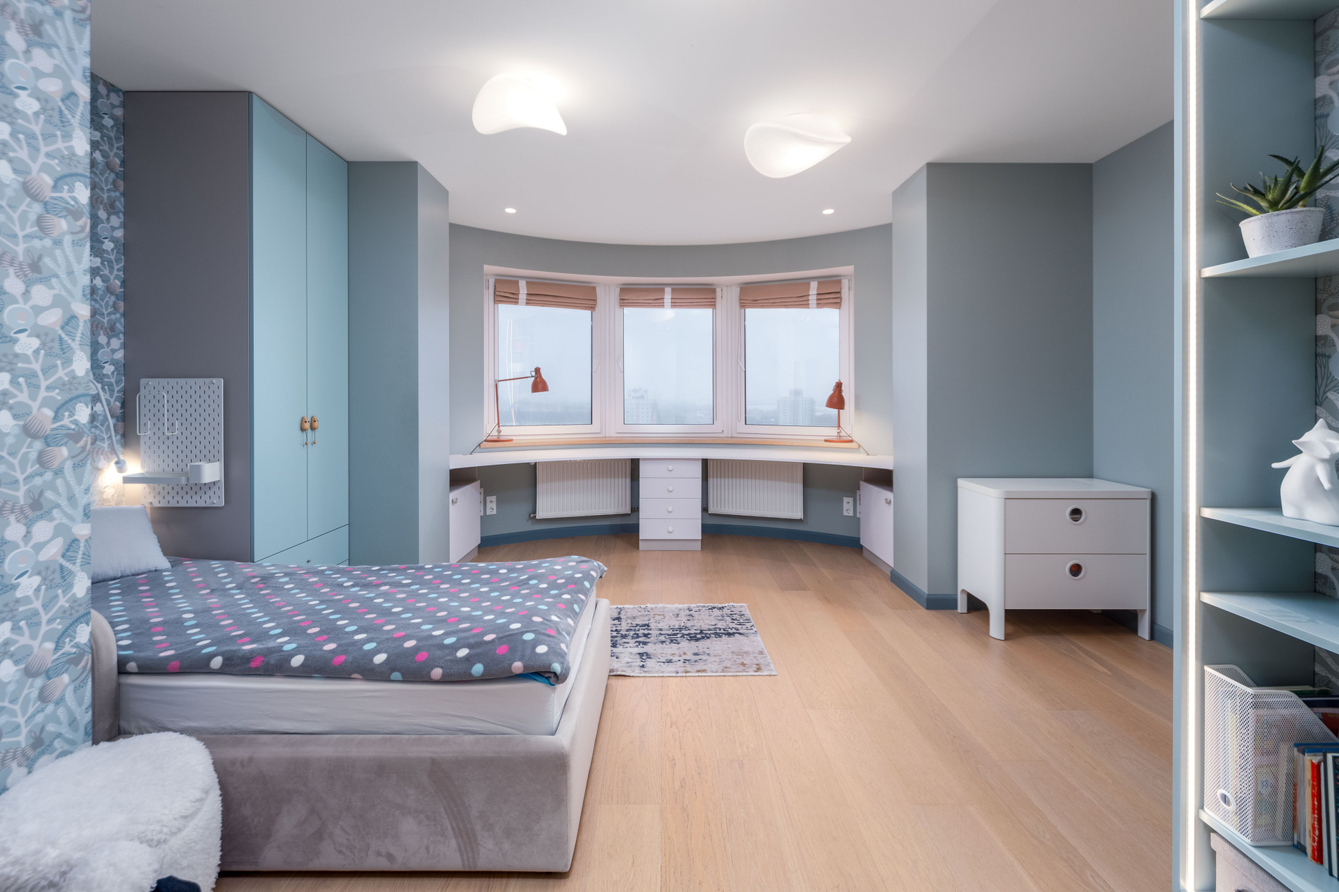 - Простор и свет: 21-й этаж из 23-х. Площадь по СНБ — 96,7 м². Высота, тишина и захватывающий вид на город, который никогда не надоест.