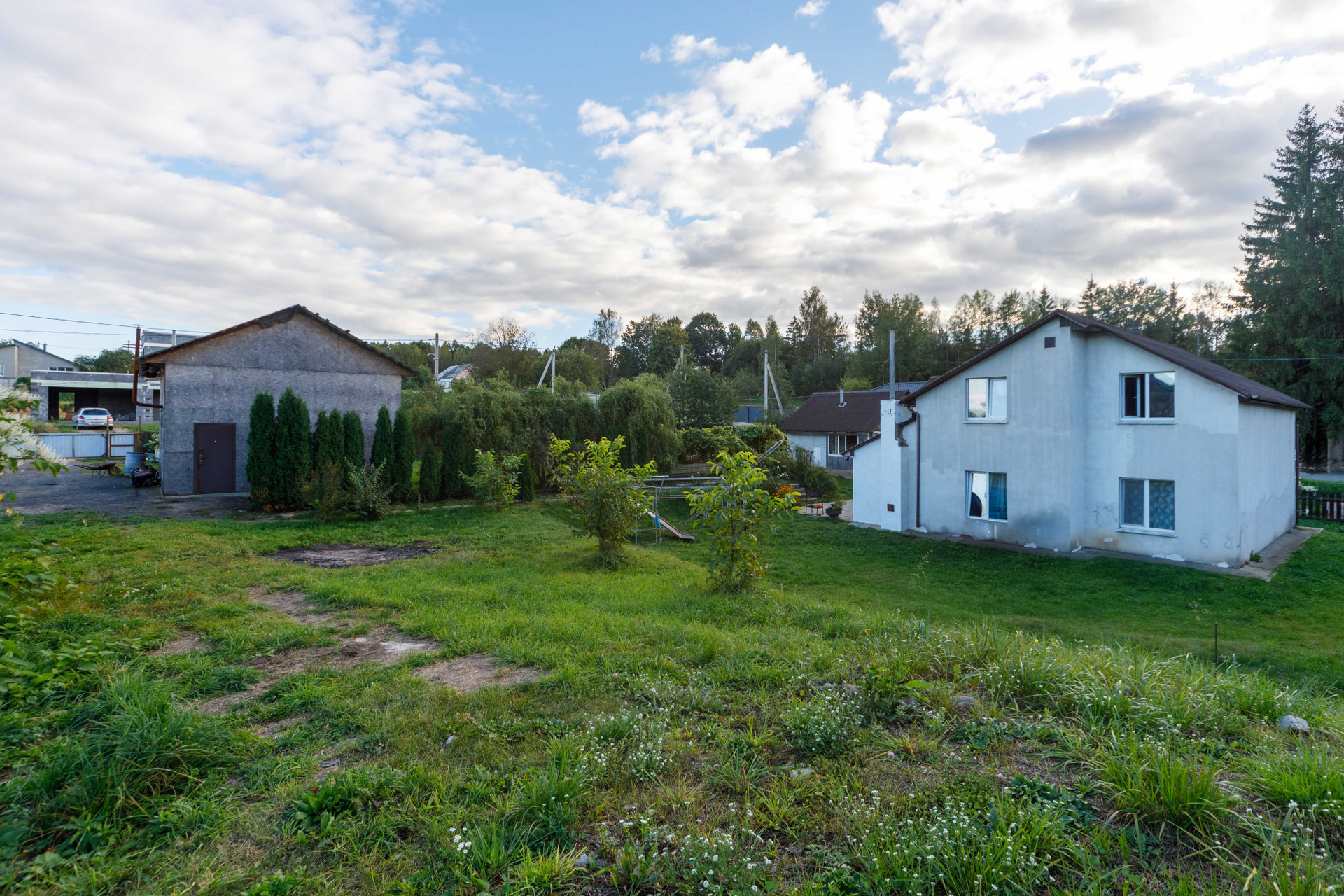 На территории находится большой, высокий функциональный гараж с твердотопливной печью для отопления. Подходит для мастерской, хобби-комнаты, спорт зала и другого функционала.
