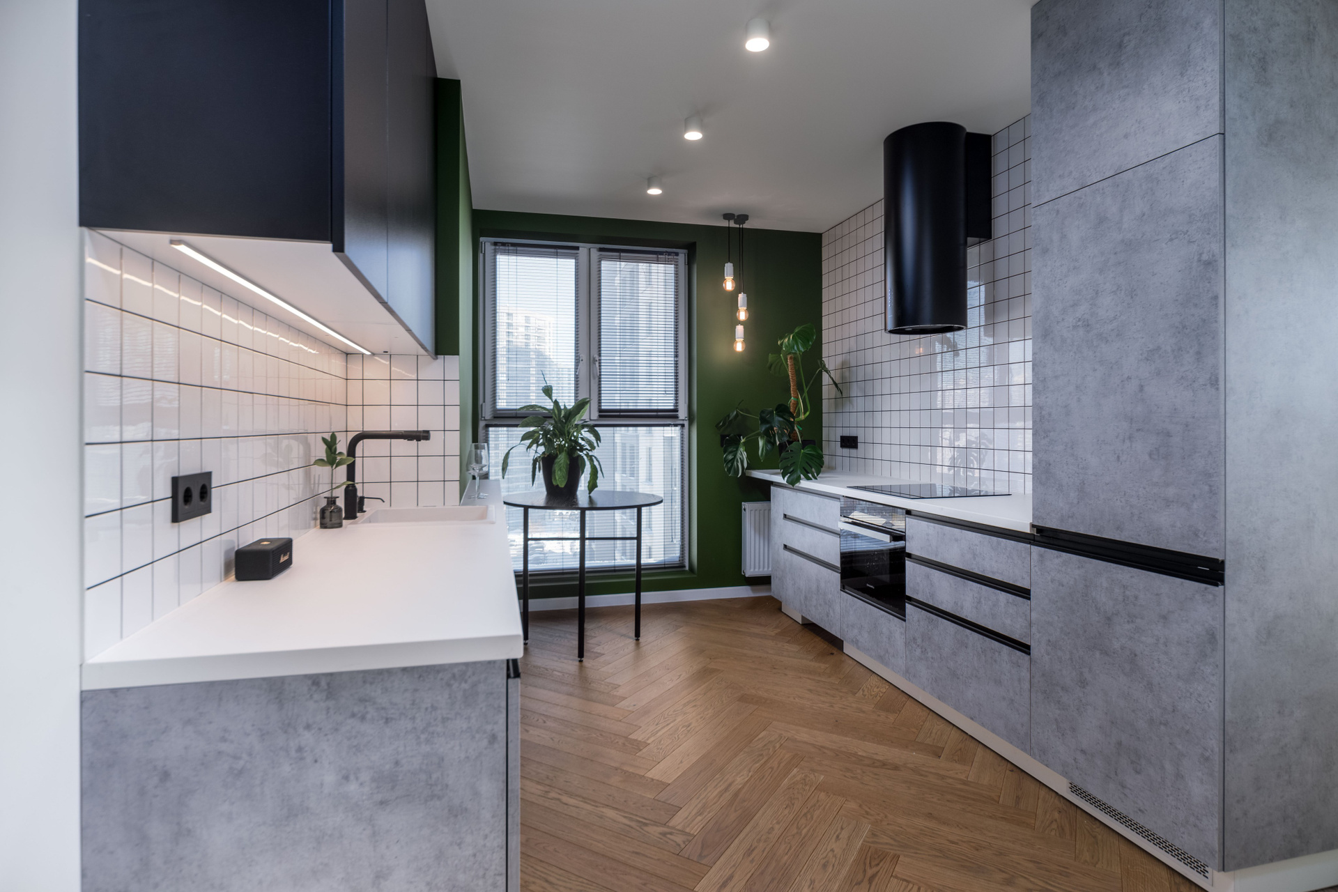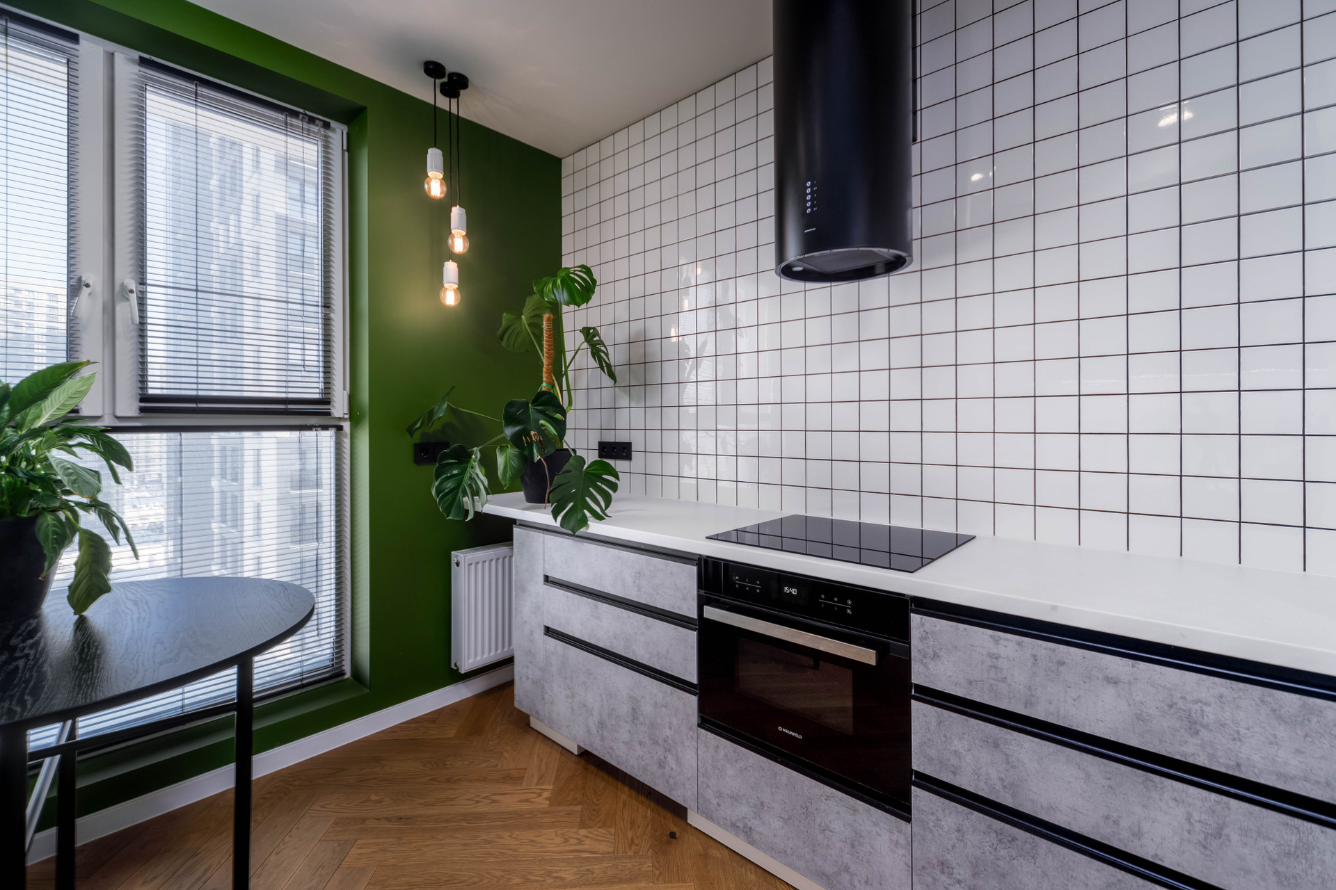 - Оборудованная кухня со встроенной мебелью и техникой.