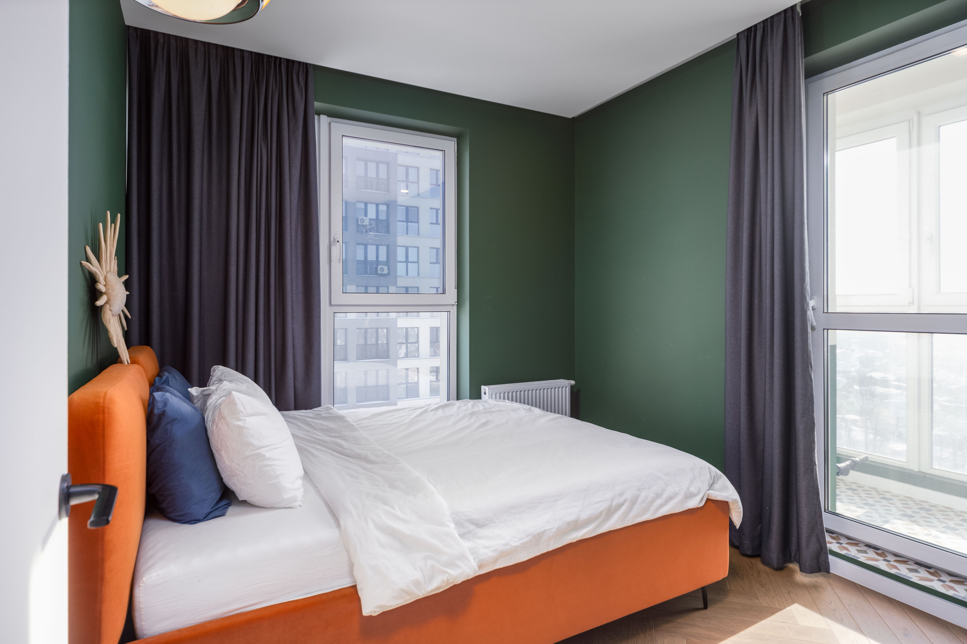 - Две изолированные комнаты (11,6 м² и 9,4 м²) и кухня (12,3 м²).