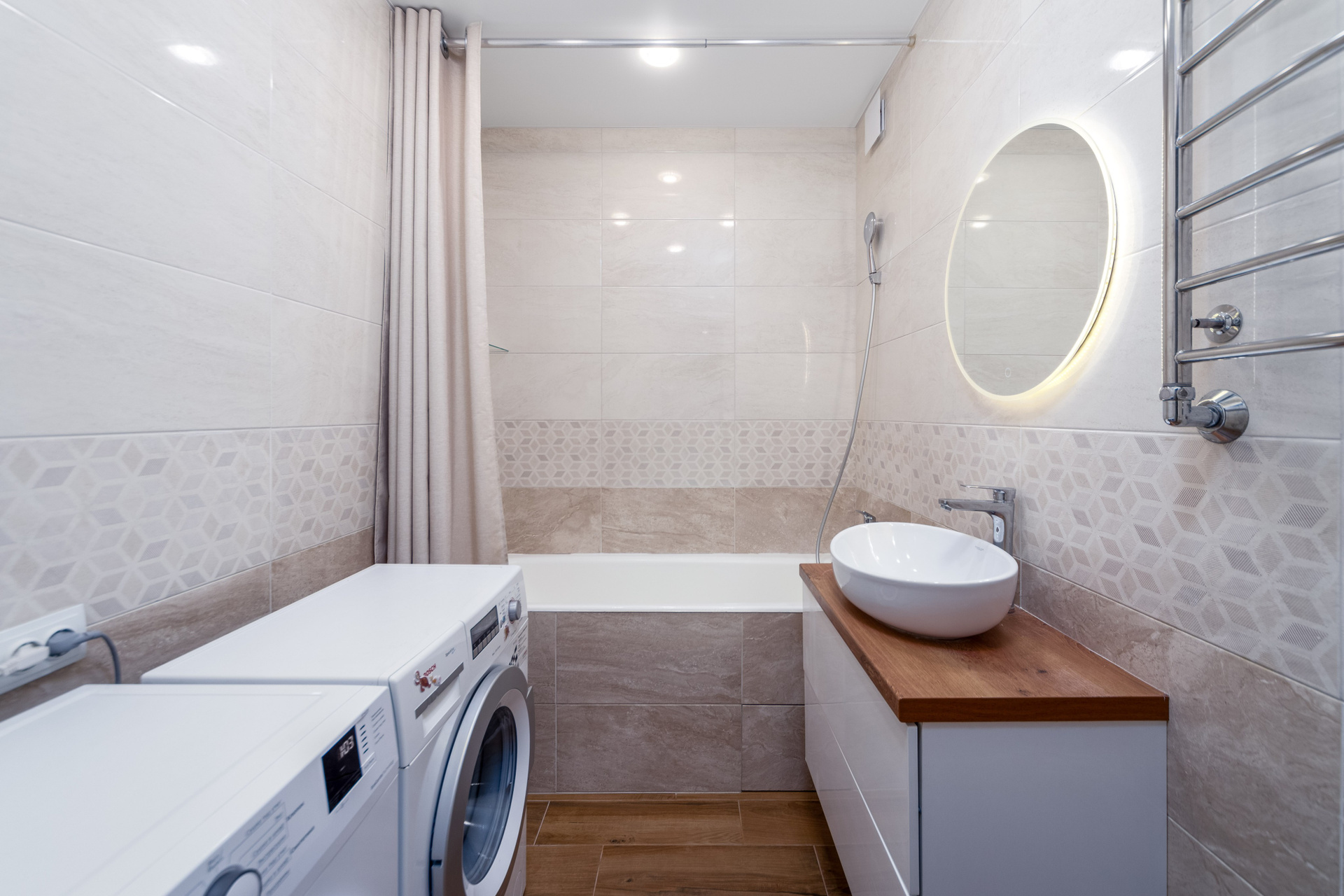 Напольное покрытие — ламинат, плитка (керамогранит).